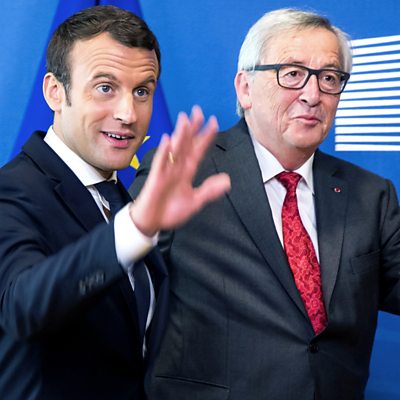 Edward Stourton asks how the European Union might change after Britain leaves. "The wind is back in Europe's sails", according to European Commission President Jean-Claude Juncker. In September, in his annual address to the European Parliament, he set out a bold dream for the future. Soon afterwards it was echoed by another, this time from French President Emmanuel Macron who declared that "the only path that assures our future is the rebuilding of a Europe that is sovereign, united and democratic". Amongst the proposals that the two leaders put forward were a European budget run by a European finance minister, an enlargement of the Schengen passport-free travel zone, and much closer collaboration on tax, defence, and a host of other issues. But at present, the European project faces huge challenges. Britain is about to leave the EU, whilst Catalonia's bid for independence is causing turmoil in Spain. In the face of such developments, how realistic are the grand visions that Europe's leaders have for the future of the continent? Producer: Neil Koenig.