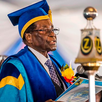 As regional branches of Zimbabwe's ruling Zanu-PF party join growing calls for President Robert Mugabe to resign, we speak to the head of an election monitoring group in Zimbabwe who argues rushing to get rid of Mugabe is not the answer. As Lebanon's prime minister leaves Saudi Arabia for France, we hear how Beirut's Sunni community feels about the political crisis. And is Tesla's new electric truck a game-changer? Image: Zimbabwe"s President Robert Mugabe delivers a speech during a graduation ceremony. Credit: Getty Images.