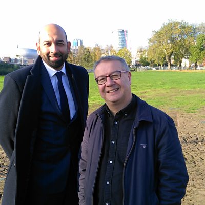 Adrian Goldberg travels around Birmingham meeting with fellow Brummies, all of whom have a special vision for the future of Birmingham's landscape. He begins on a huge piece of blank wasteland in the very heart of the city centre which is waiting to become the home of the Birmingham terminal for HS2. He's joined by Waheed Nazir from Birmingham City Council to consider how the anticipation of HS2 is already changing Birmingham's skyline as well the city's sense of its own future. Adrian joins the Birmingham Trees for Life team in a park on the far Eastern rim of the city. The team have coordinated the planting of over 70,000 trees in Birmingham over the past 10 years with many groups of children and volunteers. His next stop is to Britain's first retrofit zero carbon house, just 2 miles out of the city centre in Balsall Heath. Architect John Christophers has a special interest in Sustainable Architecture, and his recently built family home is an inspiring vision of how existing housing stock could be transformed to become carbon neutral homes. When an architectural critic from The Times visited this house he said: "I have seen the future, and it's in Birmingham". Adrian's next visit is to the Apple Day at the Queen Elizabeth Hospital. This is the brain child of HR manager Antony Cobley who has led an initiative to plant orchards and gardens around the hospital grounds for patients and relatives to the hospital. Sutton Park is one of Europe's largest urban parks and is 9 miles to the north of the city centre. Here Adrian joins a group of Rangers and volunteers on a project to transform a dense wood of holly which hasn't been coppiced for over 200 years, to an open woodland of ancient oaks and newly planted rowan trees. Presented by Adrian Goldberg Produced by Rosie Boulton.