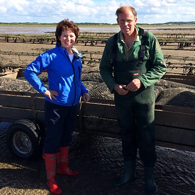 On the Northumberland coast, in the shadow of Holy Island, Chris Sutherland farms Pacific Oysters in the tidal waters. As the water retreats the team tend to the sacks of living oysters on trestles, to collect, grade and return any that are too small. Helen Mark learns how timing is everything - from risking the tides and weather, to purification and grading to making the delivery truck so they reach the restaurants fresh. Produced by Anne-Marie Bullock.
