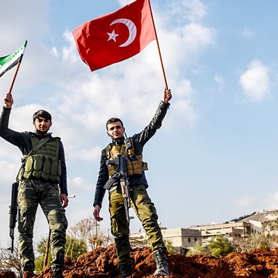 As Turkey warns Syria not to side with Kurdish troops it's fighting on Syrian soil we try and unpick the increasingly complex - and internationalised conflict. Could student power modify America's gun laws? We hear from a student caught up in Wednesday's mass shooting, who thinks it can. Also: what the Ethiopian prime minister's resignation tells us about the parlous state of that country. The Swedes are literally getting their skates on to get to work, and we get to know "mini Merkel" - the woman who could be the next leader of the German Chancellor's party. Picture: Turkish-backed Syrian rebel fighters Credit: AFP.