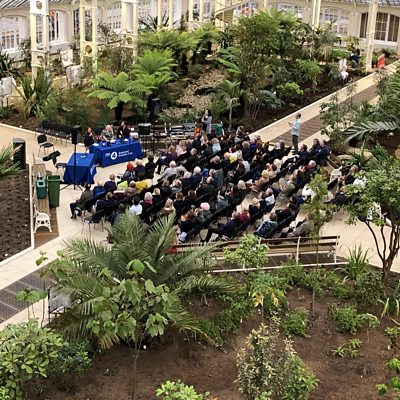 Peter Gibbs presents the programme from the new Temperate House at Kew Gardens. James Wong, Anne Swithinbank and a special guest panellist from Kew Gardens answer the questions. In and amongst the magnificent plants in the Temperate House the panel help out audience members with how to grow carnivorous plants at home, how to revive an ailing Hibiscus, and how to get the most out of a tired palm tree. They also offer tips on what to do with used compost, how to pot on an olive tree, and they offer planting suggestions to climb up a windowsill. In the feature we hear from James Wong's previous trip to the Temperate House when construction was still underway and he investigates the mammoth task of removing and replacing all the plants during the process. Produced by Dan Cocker Assistant Producer: Hester Cant A Somethin' Else production for BBC Radio 4.