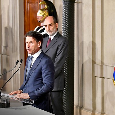 Does the new Italian government really pose a danger for the Eurozone and the European Union? There has been much to-ing and fro-ing in Rome this week as the two parties which finished up ahead in Italy's election in March have tried to persuade the president to approve their coalition government. The parties are unlikely populist allies: the anti- establishment Five Star Movement and The League, which started life as a secessionist movement in the north of Italy. Both parties reject economic austerity. They want to lower taxes and raise government debt further. This is causing alarm bells to ring in EU capitals. Were Italy to prove unable or unwilling to cut its budget deficit, the potential for a new crisis in the Eurozone looms. Italy, say some commentators, could drag other countries, such as Spain and Greece, down with it. It is unprecedented in a country that was one of the founder members of the EEC, the EU's forerunner, to have Eurosceptic leaders at the helm. CONTRIBUTORS Professor John Foot, a historian specialising in Italy at the University of Bristol Jacopo Iacoboni, author of L'Esperimento, a book about the Five Star Movement Cristina Marconi, a journalist on the newspaper Il Messaggero Ferdinando Giugliano, a columnist and leader writer on European economics for Bloomberg Opinion Judy Dempsey, a former Brussels correspondent and now a senior fellow at the Carnegie Europe think tank. Image: Italian lawyer Giuseppe Conte addresses journalists after a meeting with Italy's President Sergio Mattarella on May 23, 2018 Credit: VINCENZO PINTO/AFP/Getty Images.