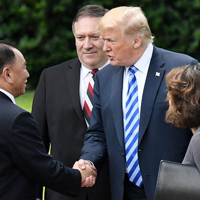 President meets one of North Korea's most senior officials, Kim Yong Chol, at the White House. Spain has a new prime minister, after Mariano Rajoy became the country's first leader to be forced from office by parliament. The card payment company, Visa, says its service has been disrupted. Saudi women's rights campaigners have hit out at the latest cover of Vogue Arabia. (picture - Donald Trump shakes hands with Kim Jong Chol ; credit - EPA/Oliver Douliery)