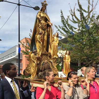 As hundreds of people take part in the annual pilgrimage in the French city of Valenciennes, John Laurenson joins the pilgrims to find out why pilgrimages are becoming so popular in secular France. Usama Hasan, Head of Islamic Studies at Quilliam, gives his reaction to the release of Amjem Choudary. And where politics and morality clash - Edward discusses the cut in funding for Palestinian projects by the US Administration with Nigel Varnell of Embrace the Middle East and Sarah Elliott from Republicans Overseas. Franklin Graham talks to Sunday about his controversial visit to Blackpool. And the heart-felt appeal from a mother who wants more people of Asian heritage to register as stem cell donors. Producers: Carmel Lonergan and Lissa Cook Series Producer: Amanda Hancox