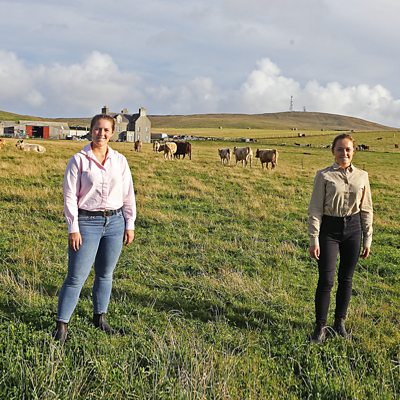 Two extraordinary young women who picked up the reins of the family farm when their father was killed in a tractor accident four years ago were voted the BBC's Countryfile "Farming Heroes" earlier this year. Sisters Kirsty and Aimee Budge, who farm on the west coast of Shetland, won the accolade for their spirit and determination which the judges said were an inspiration to all farmers, young and old. Alongside coping with personal tragedy and grief, they had to battle all the farming challenges posed by these northern isles - the frequent bad weather, distance from markets and the long dark winter months. The women, who are still in their early twenties, weren't satisfied with running the business the way it had always been done, and instead signed up to be one of Scotland's nine Monitor Farms which aim to share best practice in the farming community - and their picturesque farm of Bigton is now a hub for new ideas and practices. Nancy Nicolson hitches a lift on a quad bike with Aimee and Kirsty and heads out across the stretch of sand that links their mainland farm to the sheep grazing on stunning St Ninian's Isle.