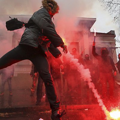 Order comes in response to the seizure of three of its naval ships. Donald Trump says Brexit agreement may make it harder for Britain to trade with US. Matthew Hedges - jailed for life last week by UAE - is preparing to travel home to the UK. NASA successfully lands probe on the surface of Mars.