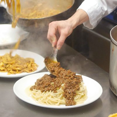 Dan Saladino looks at our long and tangled relationship with spaghetti. Both carbs and meat are under scrutiny and Mintel, which monitors consumer behaviour around the world, says we're eating less pasta. With that in mind Dan explore the past, present and future of a much loved British classic, Spaghetti Bolognese. Food historian Polly Russell uses the British Library's archives to help plot Britain's love affair with pasta, and goes in search of some of the earliest references and recipes for 'spag bol'. The food writer Daniel Young of Young and Foodish takes Dan on a tour of spaghetti history with lunch at The River Café, not the world famous restaurant but a traditional British café of the same name run by an Italian family who arrived in London in the 1950s. Spag Bol has been on their menu for nearly half a century. Meanwhile Dan's dad Liborio, who arrived in the UK in the mid 1960s finds out if his Britalian style spaghetti Bolognese sauce has enough to impress Giorgio Locatelli. The historian, John Dickie, author of Delizia, explains how making a television series for Italian television, Eating History (for SBS Food), led him to the world's first ever pasta factory. Dan also visits Italy's biggest pasta factory, owned by the Barilla family, where miles of the 'Spaghetti No.5' shape flows off the production line. Jacob Kennedy, chef and owner of Bocca di Lupo, together with Daniel Young, help Dan stage a pasta pop-up event at which the authentic Tagliatelle al Ragu Bolognese is pitched against a 1960s style Spag Bol. Have British eaters become too sophisticated for the home grown and will they vote for authentic Italian tradition instead? If this programme doesn't make you want to sit down to a big bowl of pasta and ragu, nothing will!