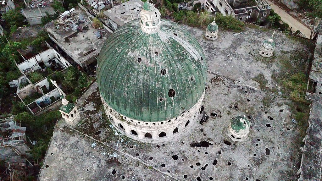 Marawi in the southern Philippines is a ghost town. In 2017, it was taken under siege for five months by supporters of Islamic State who wanted to establish a caliphate in the predominantly Muslim city. After a fierce and prolonged battle, the Philippine army regained control – but Marawi was left in ruins. Two years on, reconstruction has barely begun and over 100,000 people are yet to return home. Philippines Correspondent Howard Johnson tells the story of Marawi from the siege to the present day, through the eyes of two of its residents: a Muslim who risked his life to save his community and a Catholic priest who was held hostage by extremists. Produced by Josephine Casserly. Image: Grand Mosque pockmarked by bullet holes and artillery fire in the Most Affected Area (MAA) or Ground Zero of the siege of Marawi Credit: Howard Johnson/BBC