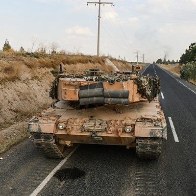 The Turkish military offensive seems to have achieved its major aim - to force the Syrian forces away from the border area they had once controlled. But what does this mean for the future of the Kurds? Jeremy Bowen... In Vienna last Saturday the 34-year-old Kenyan Eliud Kipchoge made history by becoming the first man ever to run a marathon in under two hours. In doing so, he brought Kenyans together, says Anne Soy in Nairobi, and made the whole country proud. It's now 30 years since the momentous events of 1989 that changed the politics and geography of Europe and led to the demise of the Soviet Union two years later. Steve Rosenberg visits a bookshop in the Latvian capital, Riga, for a lesson in Baltic history. They make beautiful cowboy boots in the Texan city of Fort Worth. But you'd better be well-heeled if you fancy a pair. Elizabeth Hotson eyes up the merchandise but is too shy to try any on. And in France they’ve recently launched a lottery to raise money to save the country’s vast architectural heritage. Hugh Schofield visits an old coaching inn where they have had a skeleton in the back yard, if not in the cupboard.