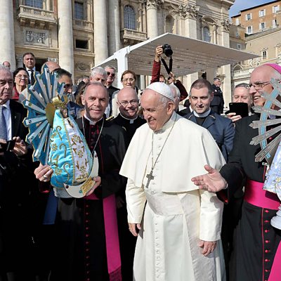 Ahead of Remembrance Sunday, Paul Mason, the Roman Catholic Bishop for the Armed Forces met his Argentinian counterpart in Rome to return a statue of Our Lady of Lujan. The statue was left behind at the end of the Falklands War and brought back to Britain. In the exchange attended by Pope Francis, the Argentinians presented a replica for the military cathedral in Aldershot. She's been called the 'Trump Whisperer' because of her closeness to the American president. This week the Pentecostal preacher Paula White was named as Advisor to the White House Faith and Opportunity Initiative. A well known televangelist - Paula White's new role is seen as a sign that President Trump is keen to keep the support of religious conservative voters. So who is Paula White and how has she forged this preacher - president relationship? This week Cardinal Nichols the leader of the Catholic Church in England and Wales was called to give evidence to the Independent Inquiry into Child Sexual Abuse. We report on his appearance and hear exclusively from one of the abuse survivors who was referred to in the hearing. Producers: David Cook Rajeev Gupta Series Producer: Amanda Hancox