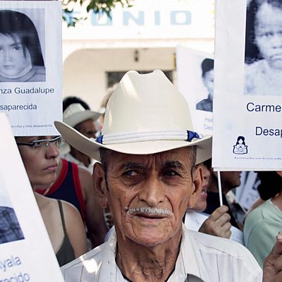 In 1994 investigators in El Salvador located the first of several hundred children who'd disappeared more than a decade earlier during the country's brutal civil war. There had been rumours that the children had been kidnapped by the army. Mike Lanchin has been speaking to Elsy Dubon who was taken from her family as a child, and to the investigator who helped to find her. Photo: Peasants who lost their children during military operations in the El Salvador civil war at a rally in March 2006 (YURI CORTEZ/AFP/Getty Images)