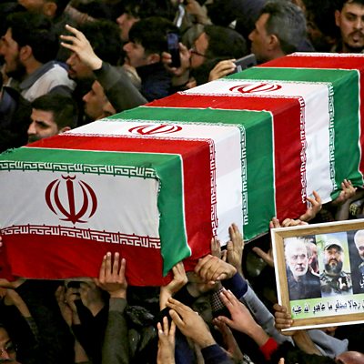 Qasem Soleimani’s coffin moves through packed streets in Tehran
