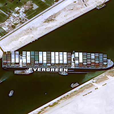 When the 400 metre long Ultra Large Container Vessel, Ever Given, got wedged diagonally across the Suez Canal at the end of March, it brought one of the world’s most important trade routes to a standstill for six days. Around ten per cent of global shipping passes through the canal. Shipping itself is responsible for some 90 per cent of global trade. The blockage served to revive worries that global supply chains have become a source of vulnerability for economies that rely on international trade. The immediate effect of the Ever Given accident for the UK may not become clear for several weeks. The Briefing Room asks what longer term vulnerabilities has it exposed and how might these best be mitigated? Presenter: David Aaronovitch Production team: Tim Mansel, Paul Moss and Kirsteen Knight Satellite image shows stranded container ship Ever Given in Suez canal. Egypt March 25th 2021. Credit: Reuters