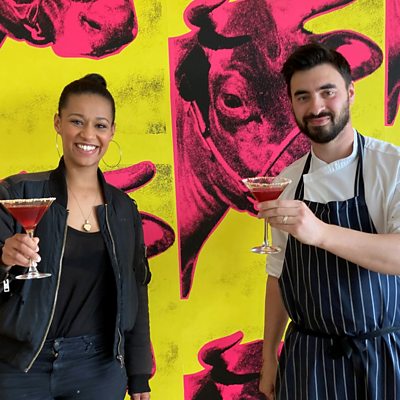 Eating with our eyes is no new concept, but can visual art itself inspire or alter the way we eat? and can food be used to help more people appreciate art? Jaega Wise meets artist, curator and gastronomy enthusiast Cedar Lewisohn to see his collection of artist's cookbooks, and hears how influential they have been. At Tate Modern, the idea of wanting to eat like an artist has been taken a step further with the restaurant offering menus inspired by exhibitions. Head chef, Jon Atashroo tells us some of the stories that have gone into the dishes. The concept of creating food inspired by the stories of artists lives and works has been picked up by museums worldwide. During lockdown, while many people have been getting more adventurous in their kitchens, galleries have been using recipes inspired by artists to bring a slice of their culture into people's homes. Jaega has a go at making a Mango-Pineapple Mezcal Margarita inspired by the work of Mexican artist Rufino Tamayo from the "Cooking with LACMA" series. Hear how she gets on in full at the end of this podcast. And the artists using their medium to influence change in our food systems. Turner Prize nominees 'Cooking Sections', tell Jaega how their exhibit at the Tate Britain has influenced the institution to stop serving farmed salmon. Presented by Jaega Wise. Produced in Bristol by Natalie Donovan. Mango-Pineapple Mezcal Margarita: Makes one cocktail. Ingredients: 50g Tajín (seasoning) 1 lime wedge 2 tablespoons fresh mango (a chunk) 2 tablespoons fresh pineapple 3 Mint leaves 1 to 2 sugar cubes * 30ml Lime Juice (or juice of 1 lime) 15ml Orange Liqueur 45ml Mezcal