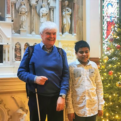 We visited St Vincent’s School in Liverpool where the children have been dubbed Climate Heroes for their work toward climate action. The visually impaired pupils have been doing their bit to ease the environmental crisis, by planting and growing their own produce and handing it out to their local community, by writing stories to encourage and influence discussions about climate change and they've been thinking up ways technology can reduce our carbon footprint. They've undergone various climate related projects this year, and some of their pupils even attended the COP26 summit in Glasgow. We hear about all of these. Join in the In Touch Christmas party, where we speak to comedian Jamie MacDonald, jazz and soul singer Katriona Taylor and musical couple Denise Leigh and Stefan Andrishin who tease out a few of the challenges of Christmas as blind or visually impaired people. They share festive anecdotes, jokes and Katriona treats us with some festive tunes. Presenter: Peter White Producer: Beth Hemmings Website image description: pictured is Peter White and one of St Vincent’s pupils, Abyan Farouk in the school's chapel. Peter is stood on the left and Abyan on the right. To the right of Abyan is a Christmas tree adorned with red and gold baubles and gold lights. To the left of Peter is a grand display of marble angels.