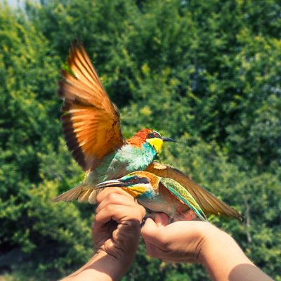 Unlike most of the natural world, birds are quite easy to enjoy with a visual impairment because, well, they can be rather noisy. Martin and Jackie Brown invited us into their garden and share some of their enthusiasms for gardening and, you guessed it, birds. Natalie Doig also joins us. Natalie is partially sighted and enjoys taking photographs of birds and other wildlife, because it allows her to zoom in and discover details she wasn't aware of before. She tells us about her techniques and shares her top tips. We also review some bird identification apps that can be downloaded onto your smartphone. Presenter: Peter White Producer: Beth Hemmings Production Coordinator: Liz Poole Website image description: Two people photographing birds perched on their hands. On either side of the image, there are two large camera lenses. The birds are brightly coloured: orange, yellow, blue and black. One of the birds has its wings stretched out, while the other is perched with its beak slightly open.