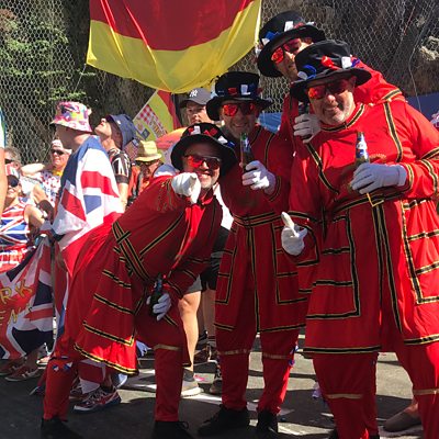Over a decade ago, two friends from Essex decided to break off from work and drive down to the Alps. Neither knew much about cycling but the plan was to watch the Tour de France dressed in peaked caps and cravats. Probably best not to ask why. By 2014 when the race came to Yorkshire, they'd moved on to full Beefeater outfits - red jackets, black hats, white gloves, matching shades. They love dancing to europop at the side of the road, and in 2019 they were voted the Union Cycliste Internationale (UCI) fans of the year. Miles Warde joins the Beefeaters as they load up their shopping trolleys at the bottom of Alpe d'Huez for one of the toughest and hottest stages of this year's race. They are pushing up to Bend 20 where they'll reclaim a little space from a German called Herbert who has been looking after their beer, then set up their generators and loudspeakers and dance for six hours. Unlike other bends on the Alpe - Dutch Corner, Norwegian Corner, Cymru Corner - Beefeater Bend is completely non-national. Everyone is welcome, and everyone comes because everyone loves europop in the blistering sun. "The nicest programme I've made." Miles Warde