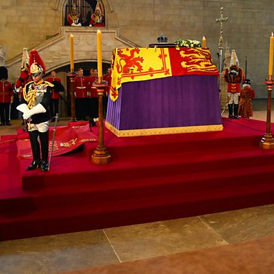 Queen Elizabeth lying in state in Westminster Hall