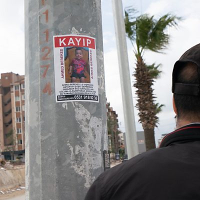 In the chaos following Turkey’s devastating earthquake in February, Omar was separated from his son Ahmed after both were pulled alive from the collapsed ruins of their home. Omar's wife and older son were killed. But he believes Ahmed could still be alive. Many children went missing in the aftermath of the earthquake. Some ended up in hospitals or childrens’ homes on the other side of the country and families have spent months trying to locate them. But for many of the estimated 3.5 million Syrian refugees, searching for lost loved ones is even harder - there are language barriers, a lack of money and they often don't have official I.D cards. Omar has enlisted the help of Nadine, a fashion designer before the quake, whose now trying to reunite Syrian families. She and her team find both success and heartbreak. Emily Wither follows Omar, a Syrian refugee, as he searches for his son. Presenter: Emily Wither Producer: Phoebe Keane Producers in Turkey: Zeynep Bilginsoy, Musab Subuh Studio mix: Graham Puddifoot Production coordinator: Helena Warwick-Cross Editor: Penny Murphy (Omar pastes a poster of his son on a lamppost near his destroyed home. It reads: ‘Missing’. Credit: Musab Subuh)