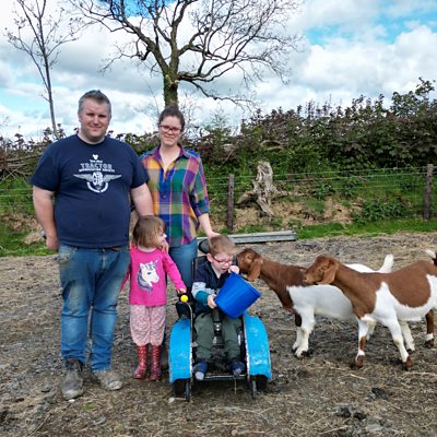 How do you weigh a goat? That’s the big question on the day Verity Sharp visits Moat Goats in Pembrokeshire. Meg and Damien McNamara manage their forty or so Boer goats for meat - and today’s the all important weighing day, to decide which of the young kids are ready for slaughter. Meg and Damien used to farm goats on a much bigger scale, but were forced to downsize when life took a different turn four years ago when their son Iori was diagnosed with cerebral palsy. But small is indeed beautiful - as Iori, now aged five, can help herd the goats in his tiny all-terrain motorised wheelchair, whilst his younger sister Mati ties a mean knot when it comes to baler twine. Produced and presented by Verity Sharp