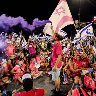 There have been mass protests in Israel tonight - after a law was passed that limits the powers of judges. Also on the programme: A new investigation into the only part of Britain to host a Nazi Concentration Camp. And we hear from TwoSet Violin, a YouTube sensation from Brisbane bringing classical music to a younger audience.