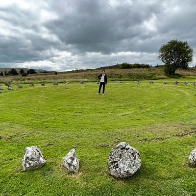 As a child, Mary McKeown played hide and seek amongst the Beaghmore Stone Circles in her native County Tyrone. It's a mysterious, mystical site with seven circles, ten rows of stones and twelve cairns, all seemingly carefully aligned. They were found by turf cutters in the 1930s, excavated in the 1960s and carbon dated back to the early Bronze Age. There are many theories about what they were used for - perhaps a burial site, a place for harvest ceremonies, or some sort of lunar or solar calendar. The belief that the stones were connected to celestial events prompted Mary, now working as a tourism officer, to bid for Dark Sky status for Davagh Forest, a short distance away. It's one of the few areas in Northern Ireland unaffected by light pollution. In Irish, 'davagh' means cauldron – the site sits in a natural bowl in the forest protecting it from artificial light from surrounding towns and villages. Davagh became the world's 77th Dark Sky park and the first in Northern Ireland. Mary and her colleagues were also successful in getting funding to build an observatory. Resident astronomer, Barry Lynn, operates a telescope through a retractable roof and projects images of the skies on screens around the park. He says he was first attracted to the area by his interest in archaeoastronomy, the study of how past cultures viewed the skies. He says its fascinating to think that centuries ago, people watched the same moon, sun and stars as we do today. Back at the Beaghmore Stones, Helen is persuaded to join Mary for a barefoot walk inside the circles. Some believe that the 'energy' of the landscape promotes a sense of mental well being. Helen remains unconvinced about this, but enjoys recapturing childhood memories. Produced by Kathleen Carragher