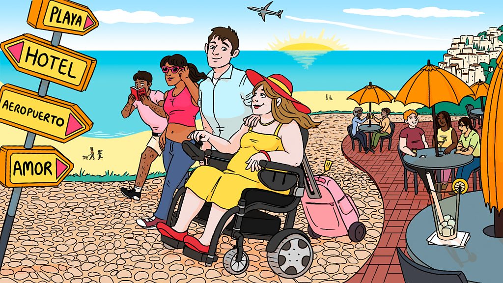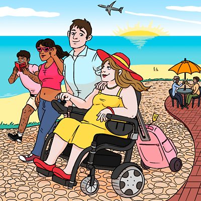 Janey Takes Off is a rom com by new writer Leanne Allen, packed with holiday adventures. It's her second drama for Radio 4, full of her trademark comic touches and sharp observation of life as a wheelchair user. Janey and Matthew are about to go on their first weekend abroad in Spain, along with carer, Kayleigh and her anxious boyfriend Daniel. Matthew hopes it will prove to Janey that he is able and ready to move in with her. Janey is not convinced and wants Matthew to appreciate the sheer amount of effort that goes into sharing a space with her, hoists, wheelchair, toothbrushes and all! As Janey feared, the holiday presents all manner of access adventures and chaos from getting off the plane, to malfunctioning hoists and an unexpected visit to the hospital. And while Kayleigh and Daniel are sickeningly in love, will Janey and Matthew's relationship survive, dive or thrive during their weekend in Alicante? The Writer: Leanne Allen is a talented new writer, from Solihull, and a wheelchair user. She wrote the well received Jazz and Dice for Radio 4 in 2021. She has worked with Naked Productions on several community radio drama projects, and an innovative new version of Middlemarch for Radio 3 in 2022. Cast: Janey ..... Steph Lacey Kayleigh ..... Mandip Gill Matthew ..... John Askew Daniel ..... Darren Kuppan Air Steward/Woman ..... Mina Anwar Director: Hannah Quigley Producer: Polly Thomas Sound Designer: Louis Blatherwick Illustration: Julian Gray Production Manager: Darren Spruce Executive Producer: Eloise Whitmore A Naked production for BBC Radio 4