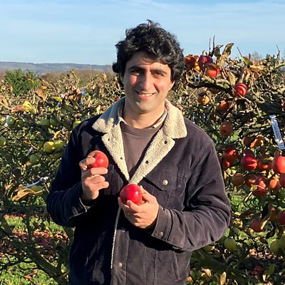 The apple of Karim Habibi's eye is, well, apple trees. In this programme Sarah Swadling visits his nursery, near Maidstone in Kent, where he has around a thousand different varieties of apple and other fruit trees. Propagating new trees is a painstaking labour of love using a process known as Grafting, which begins in the summer. Wintertime is when the 18 month old trees are harvested and sent off to their new homes in gardens and historic properties around the country. Karim also creates new apple varieties from seed - he shows Sarah his fridge full of pips which he hopes will yield some exciting new varieties. He's already bred apples named after his wife, Bethan, and some of their children. Presented and produced by Sarah Swadling