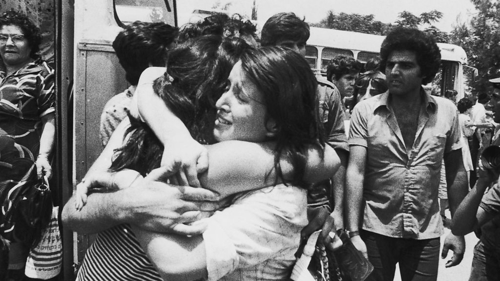 The standoff at Entebbe airport in Uganda in 1976 ended when Israeli special forces stormed the airport building to rescue over a hundred hostages from Palestinian and German hijackers. Alan Johnston reports. (Photo: An Israeli hostage is greeted on her return to Israel after Operation Entebbe on 3rd July 1976, in which, Israeli special forces rescued 100 hostages held at Entebbe Airport in Uganda by members of the Popular Front for the Liberation of Palestine following their hijack of Air France Flight 139) (Credit: Keystone/Hulton Archive/Getty Images)