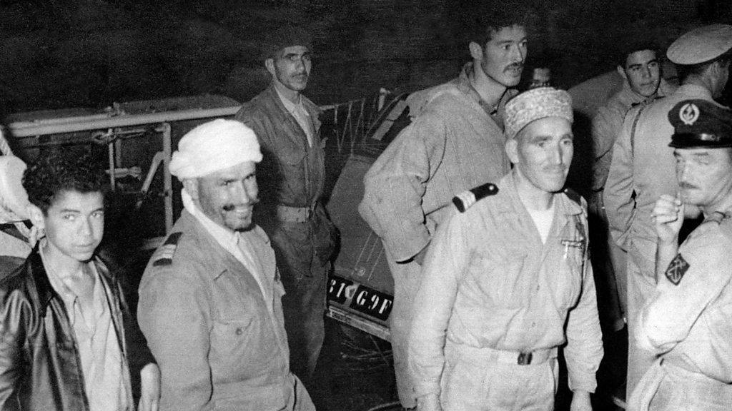 Algerians who had to fight for France during the war of independence are known as Harkis. After Algeria gained independence in 1962, the Harkis were treated badly by both the Algerians and the French. To the Algerians they were traitors and to the French they were an embarassment. (Photo: Harkis (Muslim French of Algerian origin) disembarking at Marseille, after having left Algeria, 12th June1962. (Credit D'EPENOUX/AFP/Getty Images)