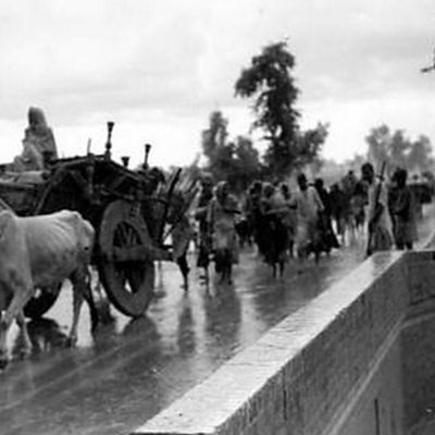 The partition of India led to millions of Hindus, Muslims and Sikhs fleeing their homes during terrible religious violence. This is the first of two programmes remembering that time. Listen to the story of Saleem, who was only five-years-old when his family tried to escape to the new Islamic state of Pakistan. This programme was first broadcast in 2010. (Photo: Muslims with bullock carts and on foot flee Hindu India across a bridge in the rain on a road in Lahore, India on 27 August, 1947.) (Credit: AP)