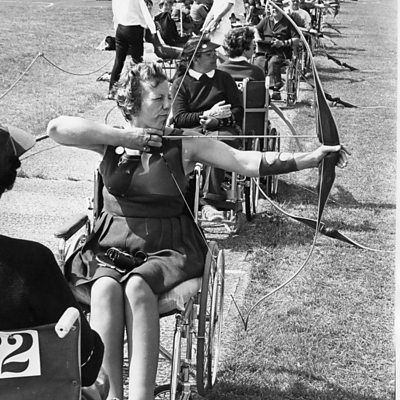 The first international games for disabled athletes were held in Rome in 1960. Only people in wheelchairs were allowed to take part. Margaret Maughan was a member of the British team, and she has been talking to Witness about their rather humble origins. (Photo: Margaret competing at a later date)