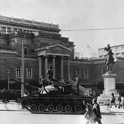 Tank on Athens street. Getty Images The leader of a student protest in Greece nearly 40 years ago tells us of the moment when the country's military junta sent in the tanks, and how she only just managed to escape with her life.