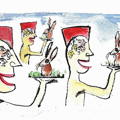 Why are we able to kid ourselves into thinking two opposite things at once? Psychologist Robert Kurzban argues that it gives us an evolutionary advantage and has to do with the way our brains are constructed, their ‘modular design’. What if our whole universe is like a single slab in a set of infinite parallel universes? Possibly all very different, possibly near identical copies? It sounds fantastical, but theoretical physicist Professor Brian Greene says cutting edge research means it’s an option we need to be open to. Finnish-born artist Oron Catts wants us to contemplate a new world where jackets are grown from engineered leather, not made from an animal but a semi-living biotechnology hide. Illustration by Emily Kasriel: Multiple selves competing inside our minds as we grow rabbits in parallel universes.