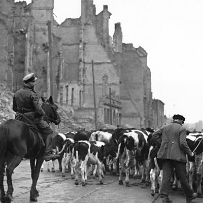 In 1945, the Red Army occupied part of Berlin as World War II came to an end. Witness speaks to one German woman about life in the city under the Soviet troops. (Photo: A Russian soldier on horseback supervising German prisoners of war as they drive a herd of cattle past Stettiner Railway Station on the way to Russia, 23rd October 1945. (Credit: George Konig/Keystone/Getty Images)