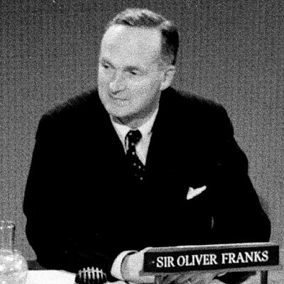 This year's Reith Lecturer is the Chairman of Lloyds Bank, Sir Oliver Franks. He is the former Provost of Queen's College, Oxford, and the former Professor of Moral Philosophy at University of Glasgow. He was the British Ambassador in Washington, DC, between 1948 and 1952, and has been described as "one of the founders of the post-war world". He delivers his Reith series entitled 'Britain and Tide of World Affairs'. In his third lecture entitled 'The Atlantic Bridge', Sir Oliver explores the relationship between the United States of America and Britain. He discusses the frictions between the two countries and their mutual interdependence. He analyses the discomforts of the passage of power, McCarthyism, and the fear that the United States will land us in a third world war.