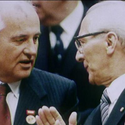 On 18 October 1989, the East German communist leader, was forced from power. He had been slow to react to the changes within the Soviet bloc. Three weeks after he left office, the Berlin Wall came down. (Photo: Honecker meets Gorbachev in October 1989. Associated Press)