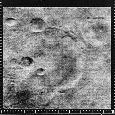 In November 1964 the first spacecraft to go to Mars left Earth. It was to send back the first photographs of the Red Planet. Engineer John Casani designed the Mariner craft. Photo: One of the images sent back by Mariner.