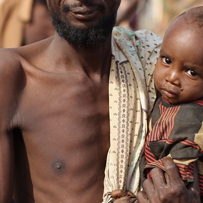 Owen Bennett Jones introduces insight, wit and analysis from BBC correspondents around the world. In this edition, Mike Wooldridge follows the shifting footprint of famine along the Somali/Ethiopian border region, while Hugh Schofield meets the legendary one-off of fashion, Pierre Cardin. Feeding the eight thousand and thousands more Public relations experts who work for the UN and other international aid agencies have a most disconcerting task. They must try to raise awareness of human misery so as to secure personal donations - or more often to pressure Western governments to increase foreign aid budgets. It's now a little over three months since famine was officially declared in parts of Somalia, and the drought emergency across the Horn of Africa and East Africa finally seemed to get the world’s attention. Yet the crisis already seems to be slipping off news agendas. Mike Wooldridge reported from the refugee camps close to the Ethiopia-Somalia border town of Dollo Ado in July, and has just been back there to see how the situation's changed. Bringing fashion to the people What is it that really drives ambitious men and women? Money, fame, power, idealism – it's different, no doubt, for different people – but in some cases it seems to be the desire to prove to those born with greater advantages that you're just as good as them, or maybe even better. To show the snobs that they're wrong. There seems to be a touch of that impulse in the man Hugh Schofield recently lunched with in Southern France. Pierre Cardin is the last survivor of the heyday of Parisian haute couture in the 1950s and 60s. He's now aged 89 and still in control of a business empire that spans the globe - and still determined to stand out from the crowd. (Image: A Somalian refugee holding his child. Credit: Getty)