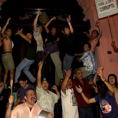 It is 10 years since the height of the financial crisis in Argentina. Bank accounts were frozen and tens of thousands of ordinary people took to the streets in protest. Photo: Demonstrators climb the gates of Government House in Buenos Aires. Credit: Associated Press.