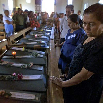 In December 1981 hundreds of peasants were killed by the army in El Salvador. Men, women and children from the village of El Mozote were shot. Only one woman, Rufina Amaya, is known to have survived. Photo: Rufina Amaya at a funeral for the victims held in 2001. Credit AFP/Getty images