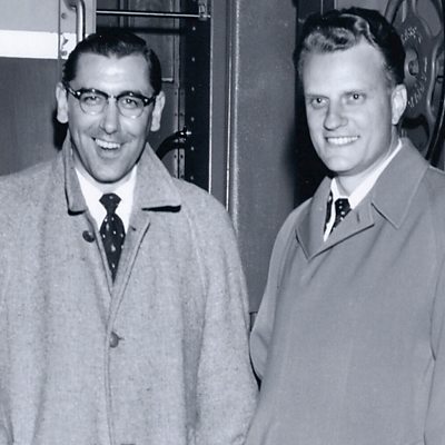 As we approach Christmas we look back at the turning point in the career of the world's most famous evangelist - Billy Graham. He's preached the gospel to more people in live audiences than anyone else in history - more than 200 million around the world - and it all began in north London in 1954. Claire Bowes has been speaking to the man who Mr Graham describes as the architect of international evangelism. PHOTO: Jerry Beavan and Billy Graham in the 1950s.