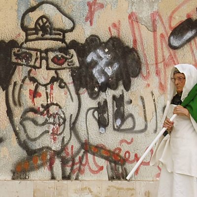 The experience of protesters in Libya proved to be the opposite of their counterparts in Egypt and Tunisia. After Egypt's President Mubarak fell, many assumed that all you had to do was organise using social media, occupy, push hard and the hollow regime would fall. Colonel Gaddafi had other ideas. He was determined to crush the revolution. Jeremy Bowen hears from some of those who were caught up in the conflict Bowen first met Salem al-Faturi at a funeral for someone who had been killed after government forces opened fire on protesters in a suburb of Tripoli. The regime's use of killings, beatings, arbitrary arrests and torture provoked violent resistance. Salem, an accountant with Price Waterhouse Coopers, became a gun-runner and describes how he would buy weapons, which were stolen from a military warehouse, and smuggle them through army checkpoints, hidden inside his car door. He still keeps a Kalashnikov in the boot of his car, together with two home-made pipe bombs. Everybody in Libya, Salim says, is interested in weapons now. Jeremy Bowen was among the last journalists to interview Colonel Gaddafi. He describes how he was rushed to a secret location by one of the Colonel's nephews. The BBC journalist stopped to ask if he could put on a suit. "No," said his minder, "It's war. Jeans are fine." Gaddafi thought that people were prepared to die to protect him. Some were, but many others were prepared to die to bring him down. Mohammed al-Ziani was caught attempting to bomb an army checkpoint. He was taken to Abu Salim, Libya's notorious jail, where he was beaten and tortured along with other opponents of the regime, including lawyers and doctors. Mohammed goes back to the jail with Jeremy where he says he learnt many things that will help him in life, "How to be patient, how to not lose faith... You know beating Gaddafi was something like impossible. But we was believing it." The programme ends with celebrations in the centre of Tripoli in Martyrs' Square. But Gaddafi had his supporters, including a young woman called Noor Saied who helped translate for foreign journalists. She tells Jeremy Bowen that people still love him but are afraid of saying so. (Image: A Libyan woman holding a Kingdom of Libya flag walks past a caricature of Muammar Gaddafi in Benghazi. Credit: Reuters)