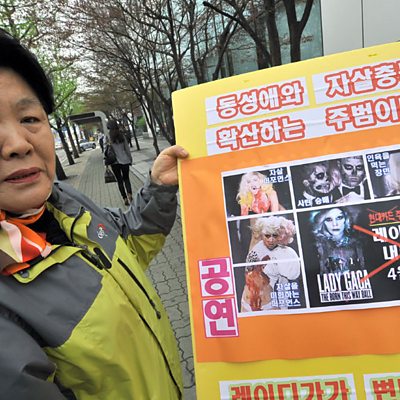 The best of the world's arts, film, music and literature brought to you every day. Presented by Harriett Gilbert Today's programme includes: Lady Gaga in Seoul, Liberatum Arts Festival in Hong Kong, Sony World Photography Prize Photo shows a South Korean Christian holding a placard Photo: Jung Yeon-Je/AFP/Getty Images