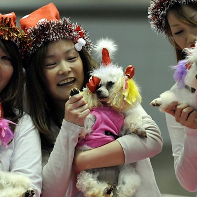 Startlingly, in a country having kittens over its plummeting birth-rate, there are now twice as many pets in Japan as there are children. While the average age of Japan's population has been steadily climbing and birth rates falling rapidly, Japan has become a pet superpower. As the number of dogs has increased, so too has the number of childless women and couples, many of whom dote on their dogs in place of children, lavishing luxuries and all kinds of anthropomorphic privileges on them. Small pedigree breeds such as chihuahuas or tiny purse-sized poodles are preferred and highly prized. Some of the luxuries on offer include dog kimonos, fake fur coats and $1,500 Hermes leather tote bags and collars. Dog buggies, nappies, sunglasses and hats are “must have” items for any self-respecting dog owner. Roland Buerk seeks an explanation for this explosion in interest in all things canine, and explores the demographic time-bomb behind it. If Japanese women continue to reject marriage and children in favour of doggy love, what will be the impact on Japan's population? (Image shows young Japanese women carrying poodles in the Tokyo International Dog Show 2010. Credit: AFP/Getty Images)