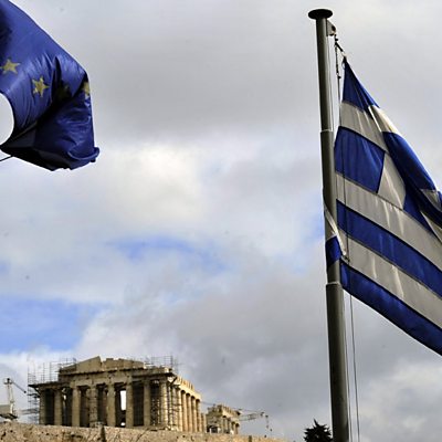Europe thinks the unthinkable - what happens if the Eurozone splits? If Greece left the single currency, how would it go about it? What would happen to the banking sector, how would a new currency be put in place, and could the Euro itself survive? Chris Bowlby runs through some of the possible scenarios. (Image: Torn EU and Greek flags flutter in Athens. Credit: AFP / Getty Images)