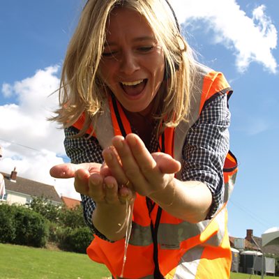 At the Worstead Festival, stand-in Quester Julie Reinger had to try some egg throwing!