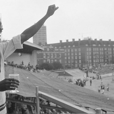 It's the summer of 1976 and the England cricket team is preparing for a series against the West Indies. The England captain, the South African-born Tony Greig, says in a pre-series interview that he intends to make his opponents "grovel". This was a highly provocative remark, made about a team of mainly black cricketers from the Caribbean in the era of apartheid; and a remark that Greig was made to regret once the teams took the field. (Image: Man of the match Michael Holding acknowledging the crowd after the fifth test for the Wisden Trophy at the Oval in 1976. Credit: Getty Images)
