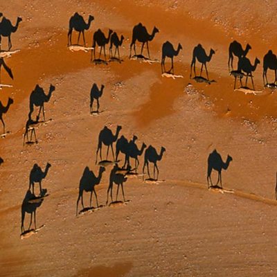 Extraordinary personal stories from around the world. Today, we hear from a Danish surgeon just back from treating wounded people in a makeshift hospital in Syria; an Indian father and son who have saved dozens of lives by diving in to Delhi's waterways and an American photographer who takes extraordinary aerial pictures with the help of his custom-built paraglider. (Image: Vertical view of a herd of camels cross the sandy gravels of the Empty Quarter on their way to graze near Wadi Mitan in western Oman. © 2004 George Steinmetz)